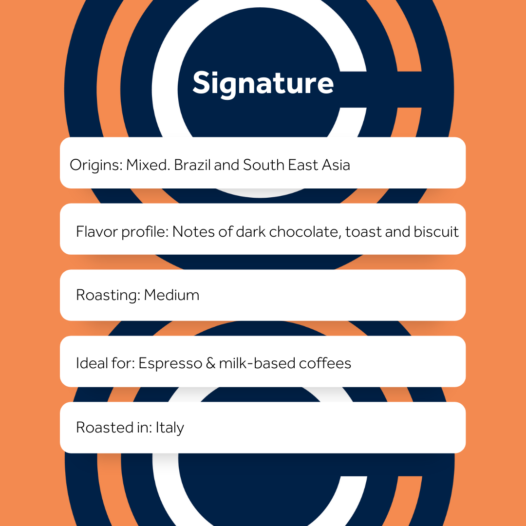 - Smooth & Balanced – rich Arabica base with a touch of Robusta for body & crema