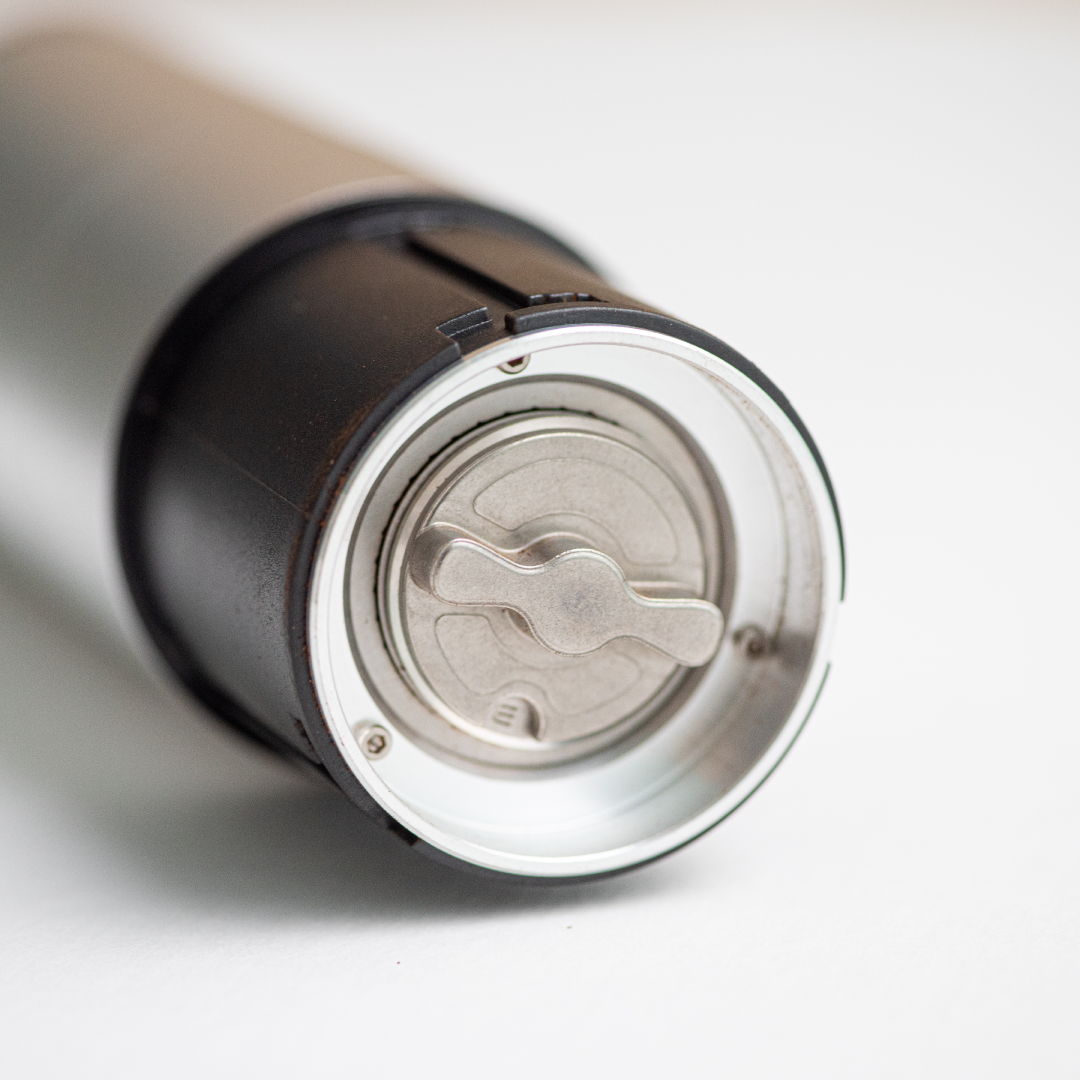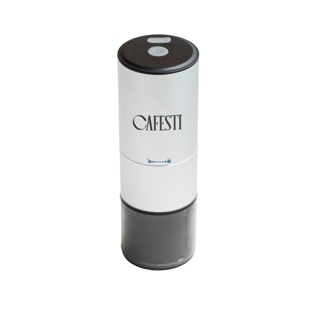 Perfect for travel, and can be used to freshly grind beans for the "bypass" compartment on the Cafesti coffee machines. Please note this is a low volume grinder